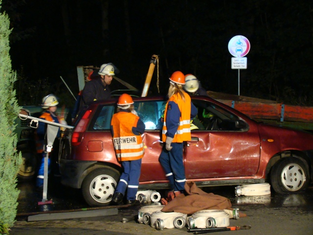 Alljährlich ist die Übung mit der Einsatzabteilung der Höhepunkt im Dienstplan der Jugendfeuerwehr. Am Freitagabend war es wieder so weit. Um 19.10 Uhr wurde die Einsatzabteilung und die Jugendfeuerwehr der Feuerwehr Mittel-Gründau zu einem Verkehrsunfall mit eingeklemmter Person alarmiert.